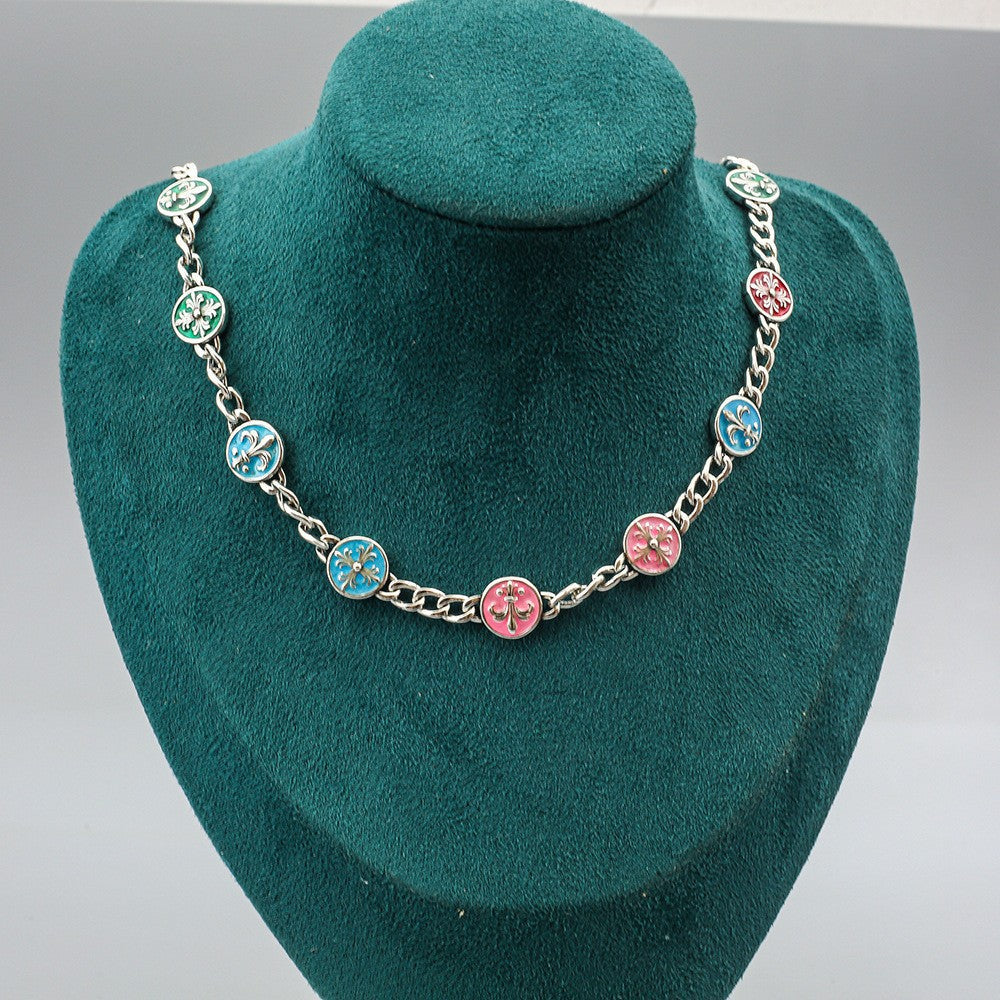 Chrome Hearts anchor cross flower pattern enamel drip necklace