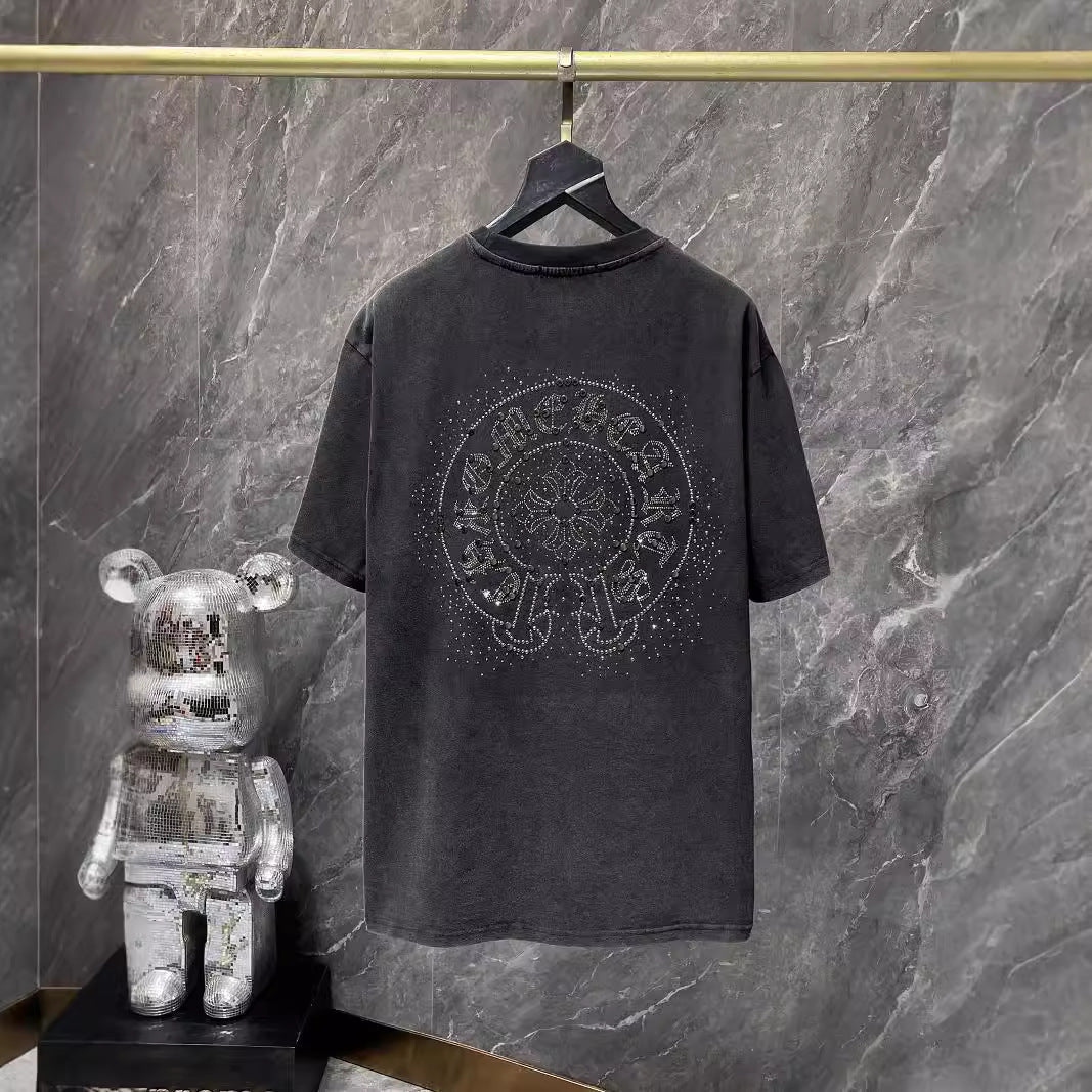 CHH Chrome Heart T Shirts Croix Cross Color Leather Printed Short Sleeve T-Shirt