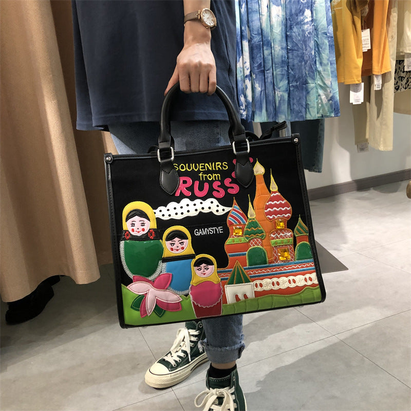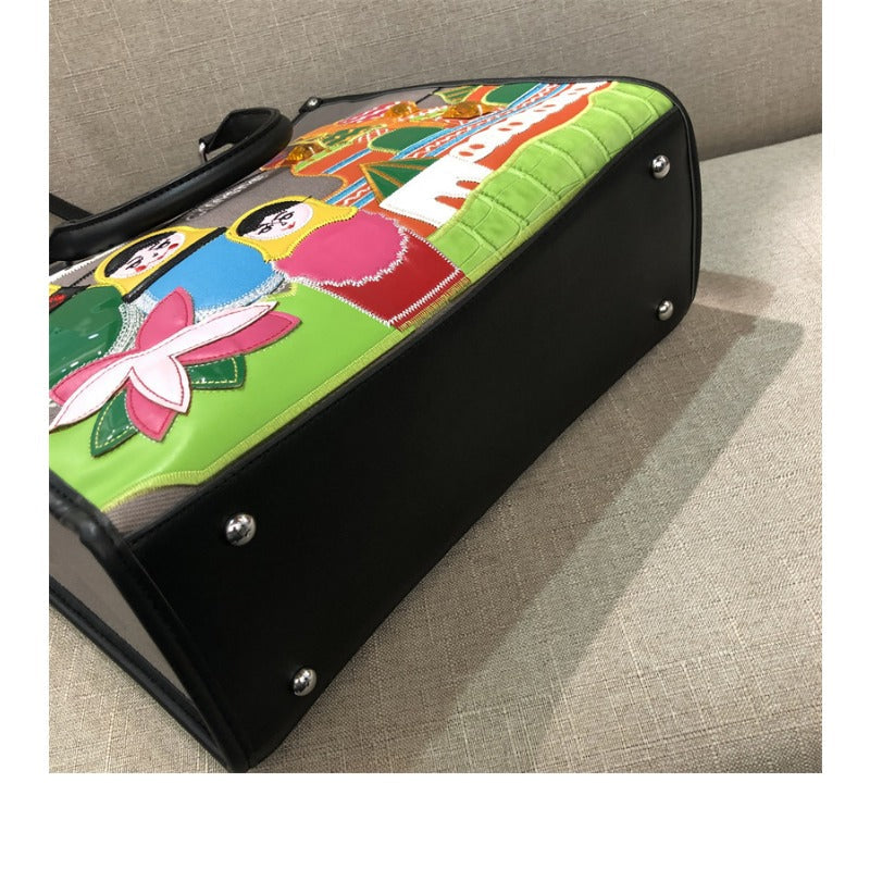 Chh Chrome Heart Leather Bag Splicing Embroidered Tote Bag