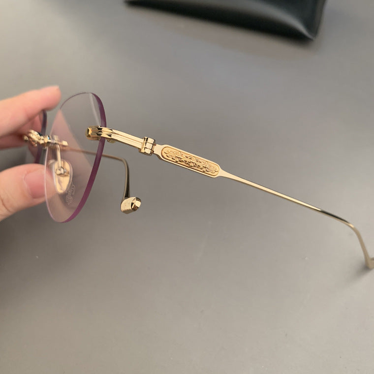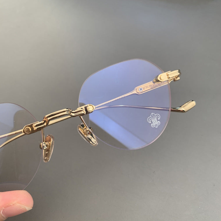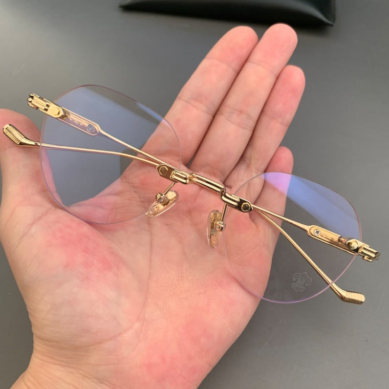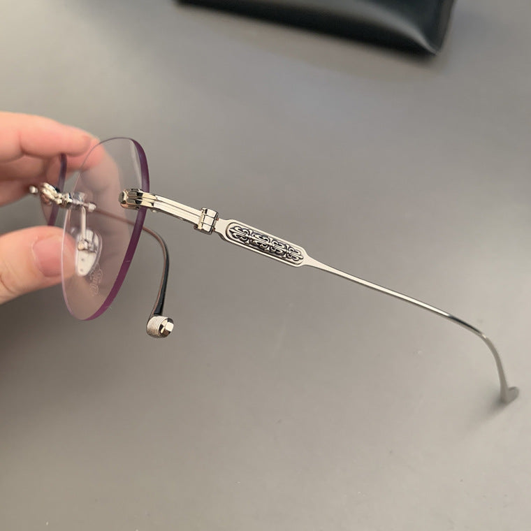 CHH Chrome Hearts Glasses Frameless Perforated Round Vintage Myopia Glasses Frame
